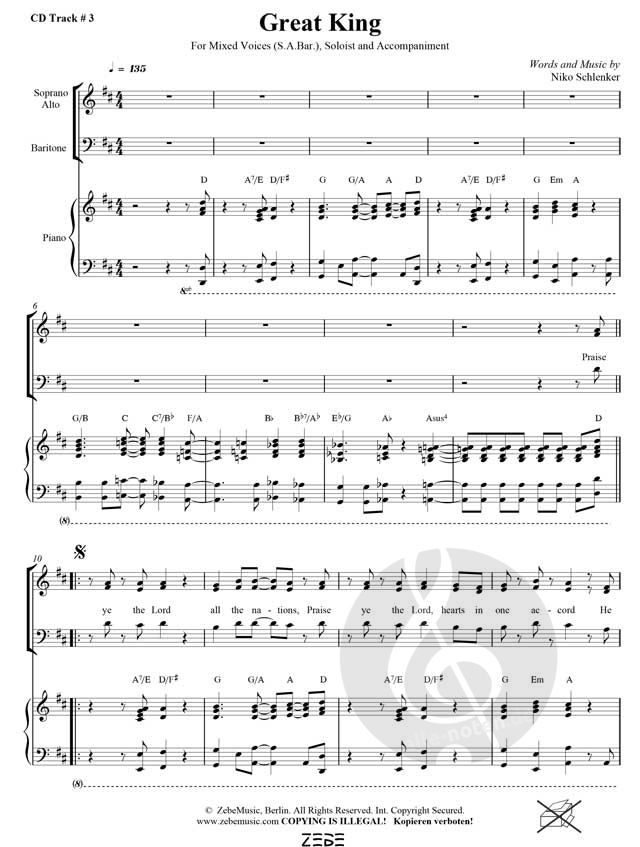 - Opt. Besetzung Gesang, Gemischter Chor (SAB) und Klavier