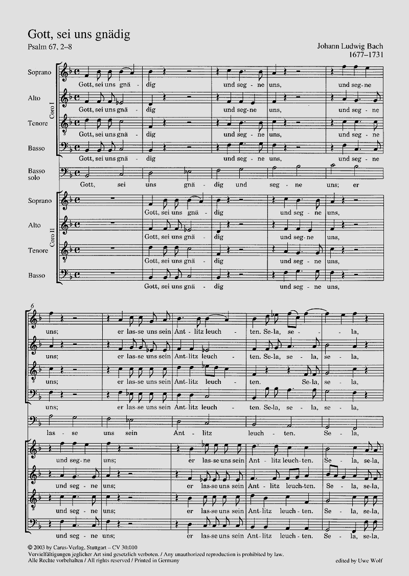 - Besetzung Gesang (tief), 2 gemischte Chöre (SATB) und Basso Continuo