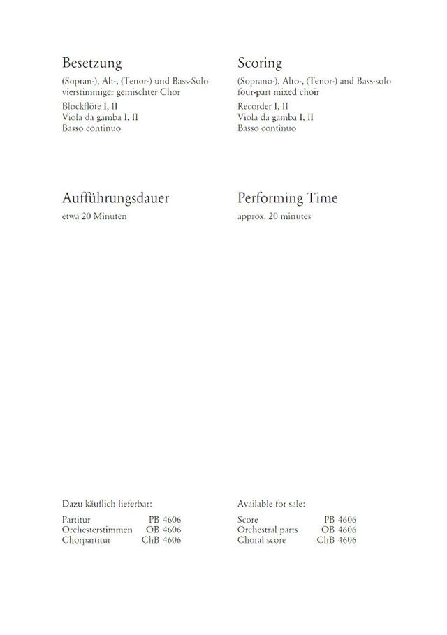 - Soli, Gemischter Chor (SATB), Orchester und Basso Continuo