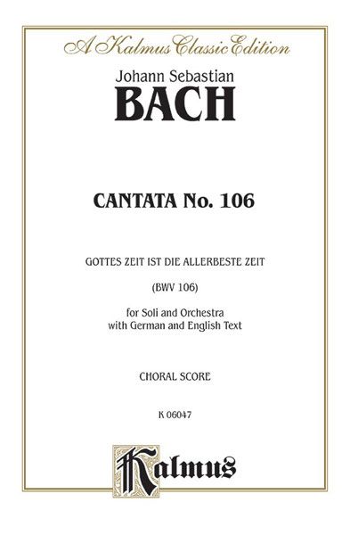 Subtitled 'God's Time is the Very Best Time,' the text consists of different Bible verses of the Old and New Testament, as well as individual verses of old church songs by Martin Luther and Adam Reusner. There are two distinct parts to the cantata: the view of the Old Testament on death shown in the first part is confronted by the second part, representing the view of the New Testament; the separation of the old by the new determines the symmetrical structure of the cantata. This is the choral score of the work, with English and German texts, and with piano accompaniment. 37 pages, 7 by 8 ½ inches.