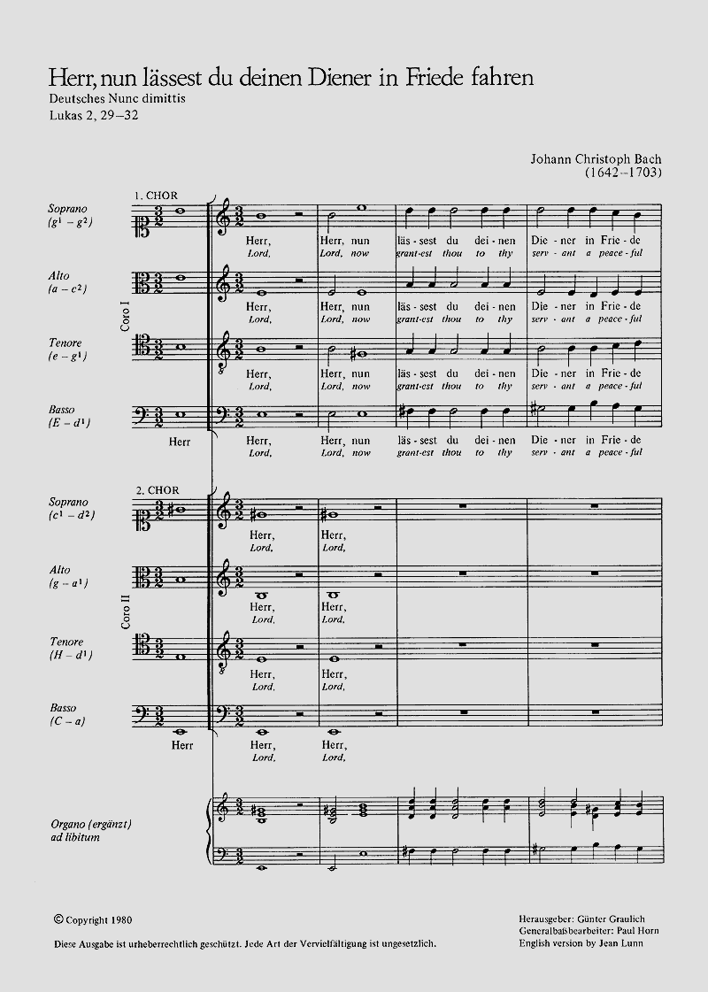 - Besetzung 2 gemischte Chöre (SATB) und Basso Continuo