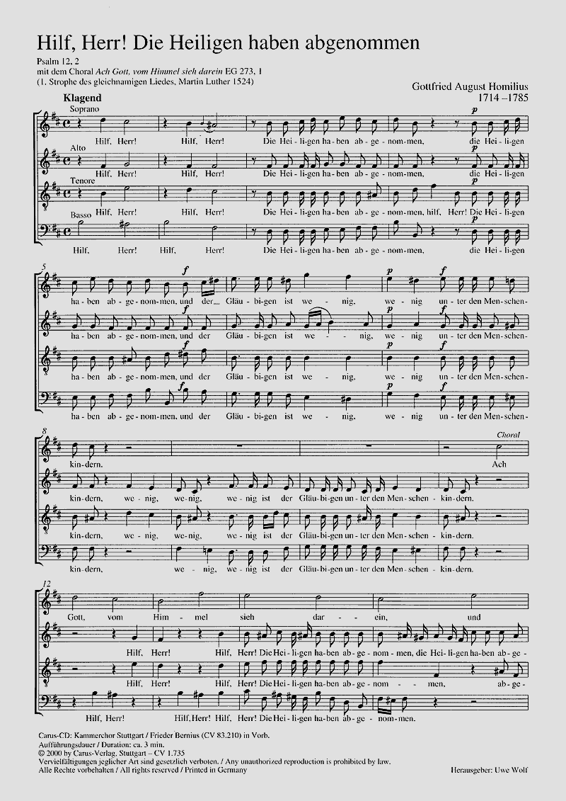 in Kombination mit der 1. Strophe des Chorals 'Ach Gott, vom Himmel sieh darein' von Martin Luther (1524) - Coro SATB