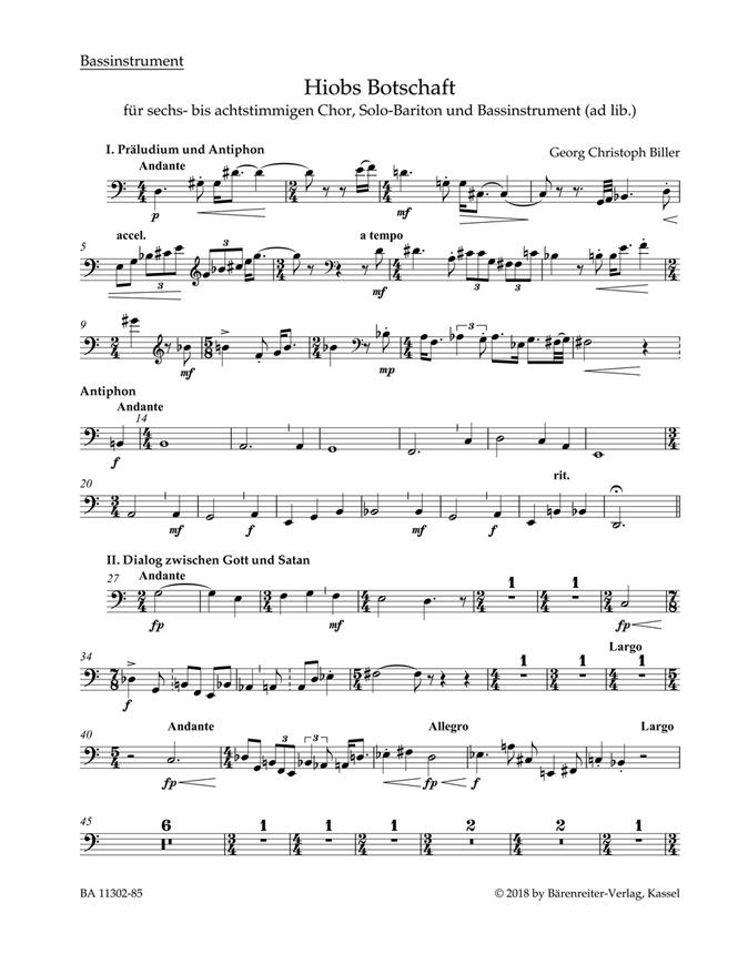 für Solo-Bariton, gemischten Chor und Bassinstrument ad libitum