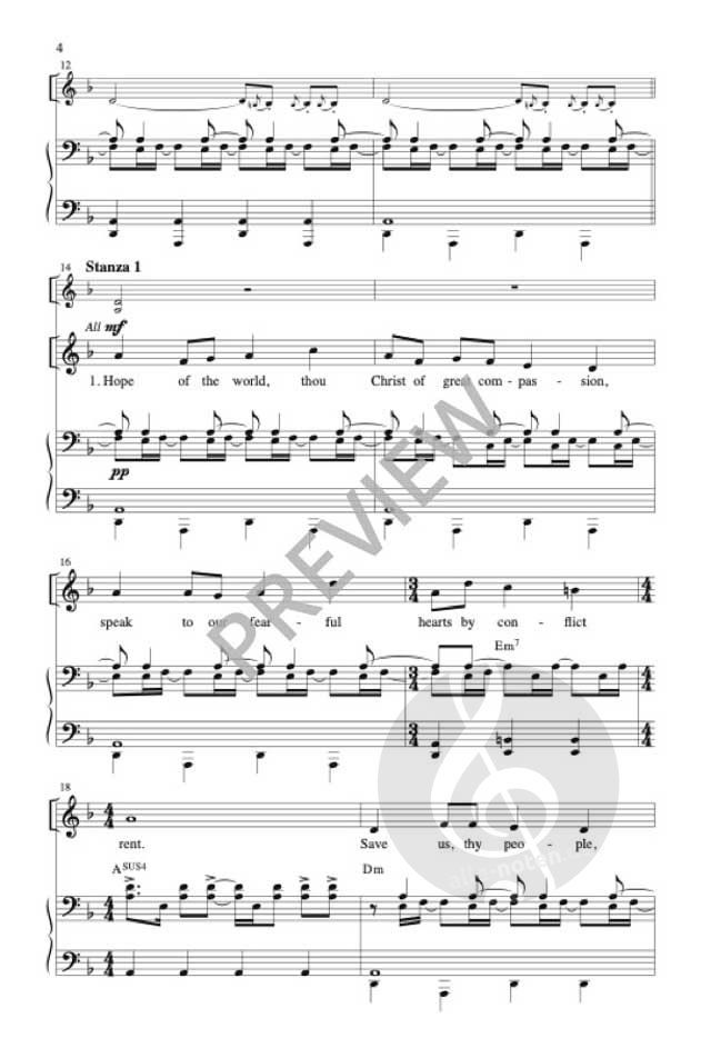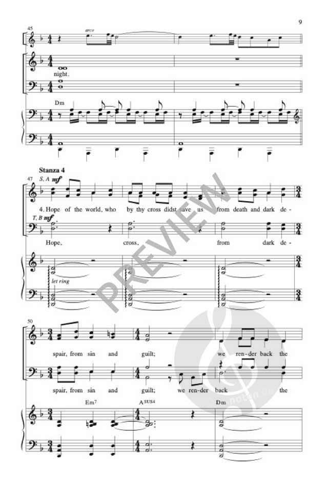 für SATB-Stimmen, Keyboard und Gitarre mit Violine und optionalem Bass