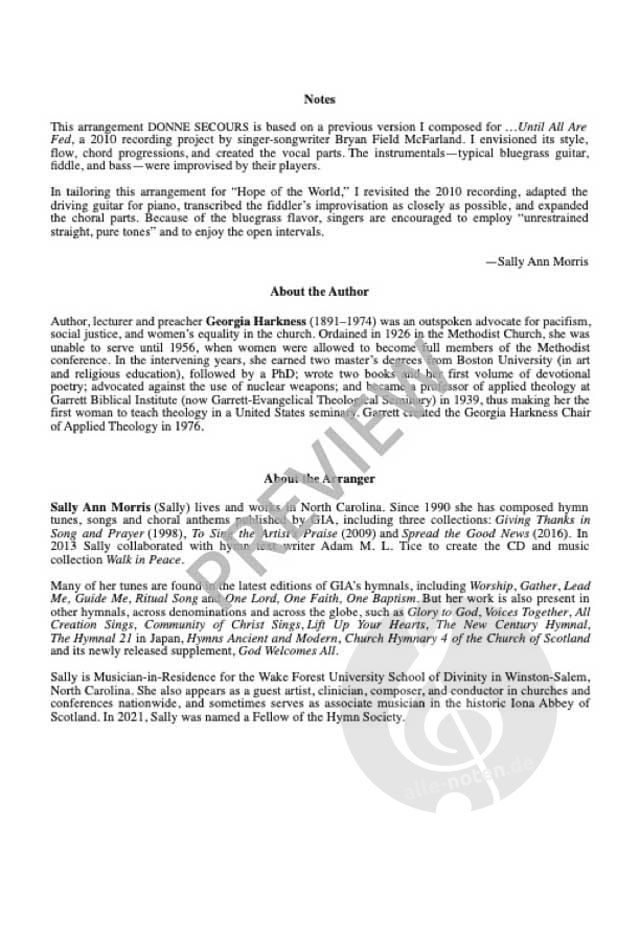 - Opt. Besetzung Gemischter Chor (SATB), Klavier, Gitarre, Violine und Kontrabass
