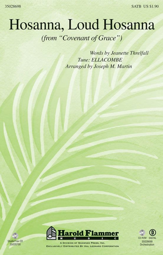 A cheerful rendition of the time-tested ELLACOMBE tune is set in a rolling 6/8 meter. The effect is compelling and one canalmost see the swaying of palms and the celebrating crowds that followed Jesus into Jerusalem that first Palm Sunday. Effective with piano or the orchestration, this anthem makes a great processional or special music to observethe triumphal entry. Available separately: SATB, StudioTrax CD, Orchestration CD-ROM (Score & parts for Flute 1&2, Oboe, Clarinet 1&2, Bassoon, Horn 1&2, Trumpet 1, Trumpet 2&3, Trombone 1&2, Bass Trombone/Tuba, Timp, Perc 1&2, Harp, Violin 1, Violin 2, Viola, Cello, Double Bass). Duration: ca. 2:06.