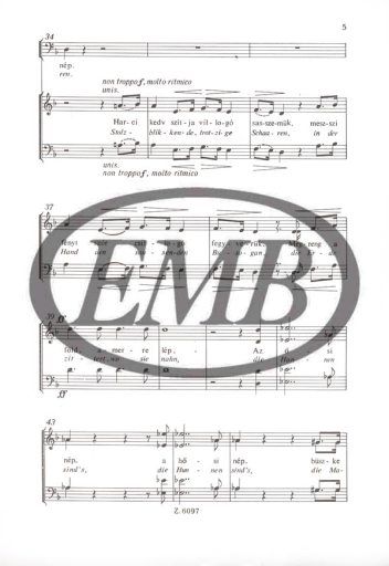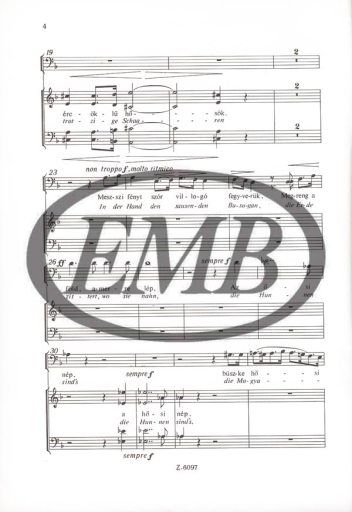 Originalbesetzung: Solostimmen (Sopran, Tenor, Bass), Männerchor und Klavierbegleitung (Z. 3146). Für gemischten Chor übertragen und herausgegeben von István Szelényi. Deutscher Text von Franz Schober.