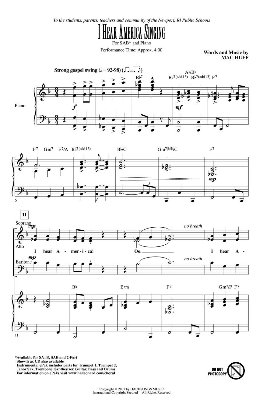 Set in a strong gospel swing, this inspirational work is a powerhouse from beginning to end! Listen children, listen, there's a song in the air. America is singing a song for all to hear. Ideal for mass choirs and other festival and patriotic programs! Available for SATB, SAB, 2-Part, Instrumental ePak and ShowTrax CD. Performance Time: Approx. 4:00.