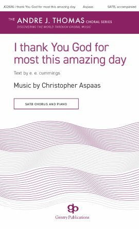 Singers and audience alike will thoroughly enjoy Christopher Aspaas' exquisite setting of e.e. cummings' poem i thank You God for most this amazing day, brought to you by the new Andre J.Thomas Choral Series. The lovely text inspires the composer to reflect on the importance of gratitude and create a celebration of the natural world's beauty and wonder. Beginning with a prayer of thanks to God for the most amazing day, filled with the sights, sounds, and sensations of nature, the speaker describes the sun on the hill, the wind in the trees, the warm, white sand, and the cool, green sea. These natural elements are depicted in vivid, sensual detail, inviting the listeners to experience them alongside the performers. Masterfully done. A great selection for graduations, weddings, festivals, and school concerts year-round.