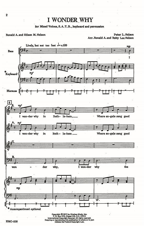 A light, catchy rhythm makes this Christmas piece appealing, it is easily worked up by most groups.