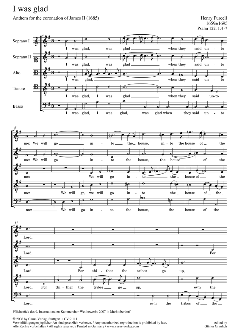 Anthem for the coronation of James II (1685) - Pflichtstück des 9. Internationalen Kammerchor-Wettbewerbs 2007 in Marktoberdorf - Coro SSATB