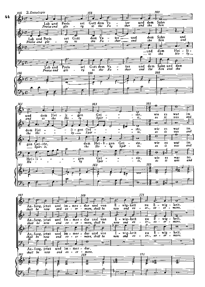 Doxologie auch als Einzeldruck erhältlich. Coro SATB, [4 Instr, Cb, Org].