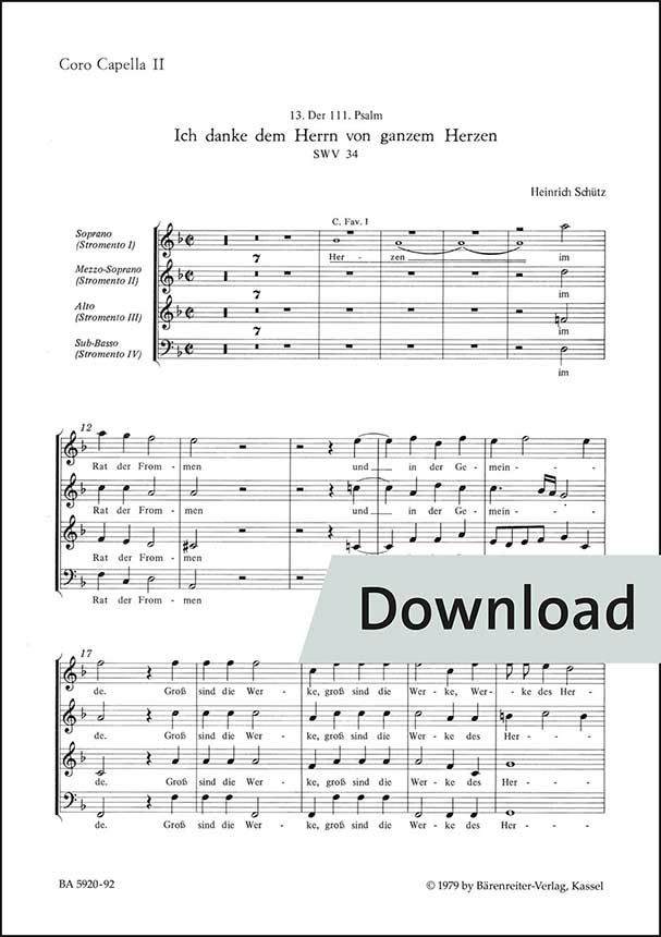 Psalm 111 für 2 4-stimmige Favorit-. 2 4-stimmige Capell-Chöre und Basso continuo Nr. 13 SWV 34