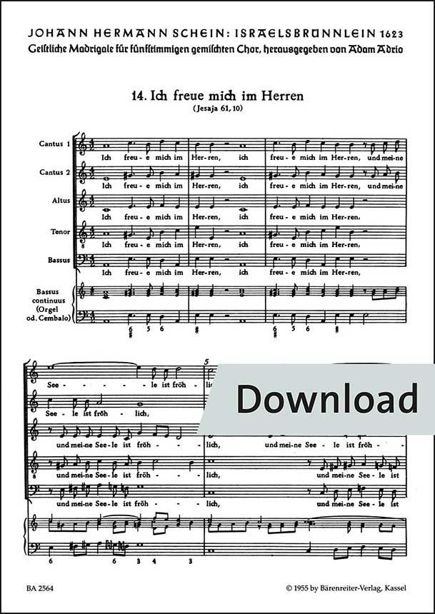 Motette Nr. 14 aus Israelsbrünnlein. Urtext der Neuen Schein-Ausgabe. Gemischter Chor-SSATB, Basso continuo - Singpartitur; Spielpartitur
