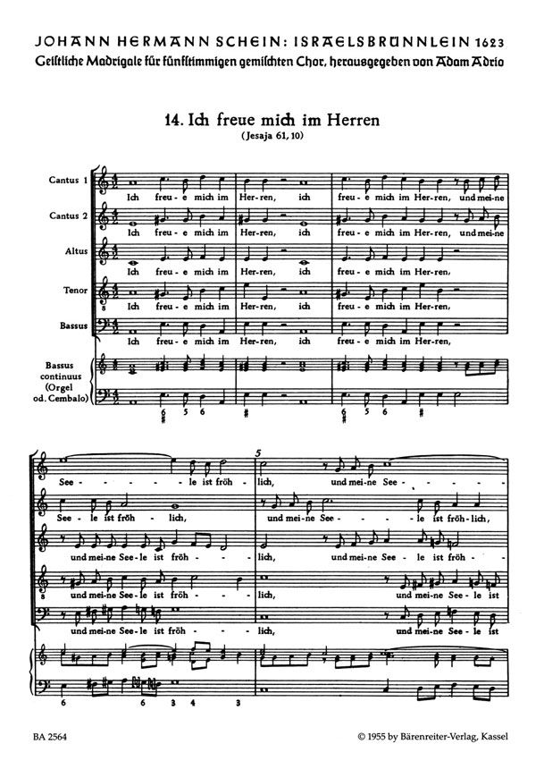 Motette Nr. 14 aus Israelsbrünnlein. Urtext der Neuen Schein-Ausgabe. Gemischter Chor-SSATB, Basso continuo - Singpartitur; Spielpartitur