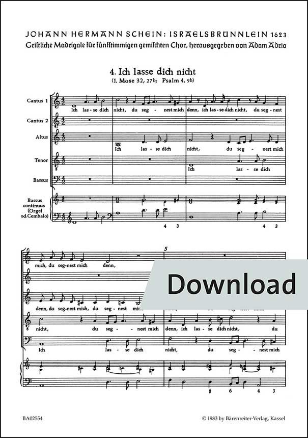 Motette Nr. 4 aus Israelsbrünnlein. Urtext der Neuen Schein-Ausgabe. Gemischter Chor-SSATB, Basso continuo - Singpartitur; Spielpartitur