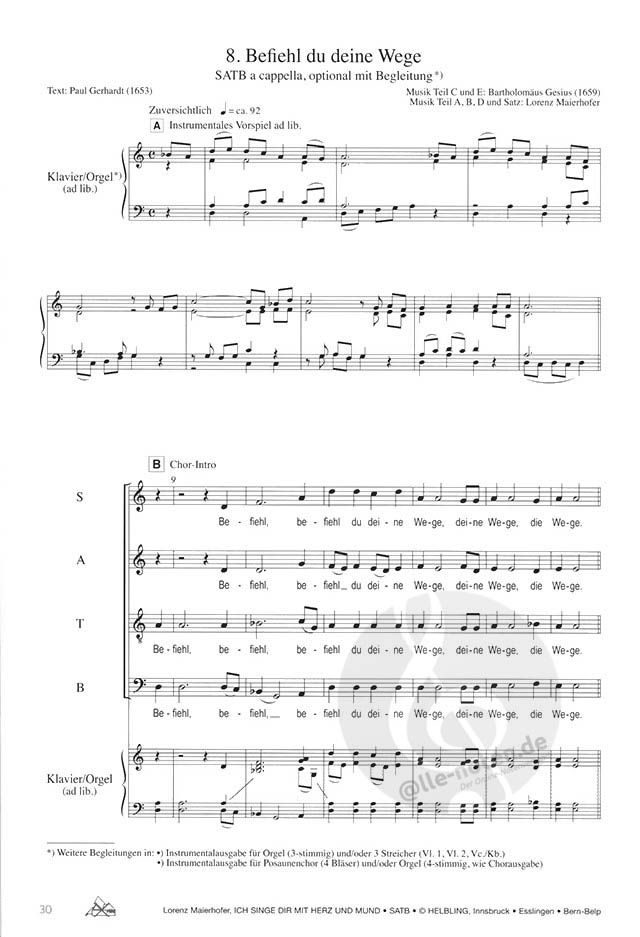 Der großen Tradition der evangelischen Kirchenmusik folgend, wurden die Lieder im Laufe der Zeit oft für Chöre gesetzt - Johann Crüger und Johann Sebastian Bach zählen sicherlich zu den bekanntesten Bearbeitern. Mit großer Ehrfurcht vor den Textdichtern und Komponisten geht Lorenz Maierhofer als Bearbeiter sehr behutsam an diese Lieder heran. Immer an den gewohnten Tonarten des Gemeindegesangs orientiert, sind die Arrangements um kleine Vor- oder Zwischenspiele erweitert. Zusätzliche instrumentale Solostimmen, häufig auch für eine optionale Gesangsstimme mit Text unterlegt, machen aus den Choralmelodien bewegende Chorstücke.