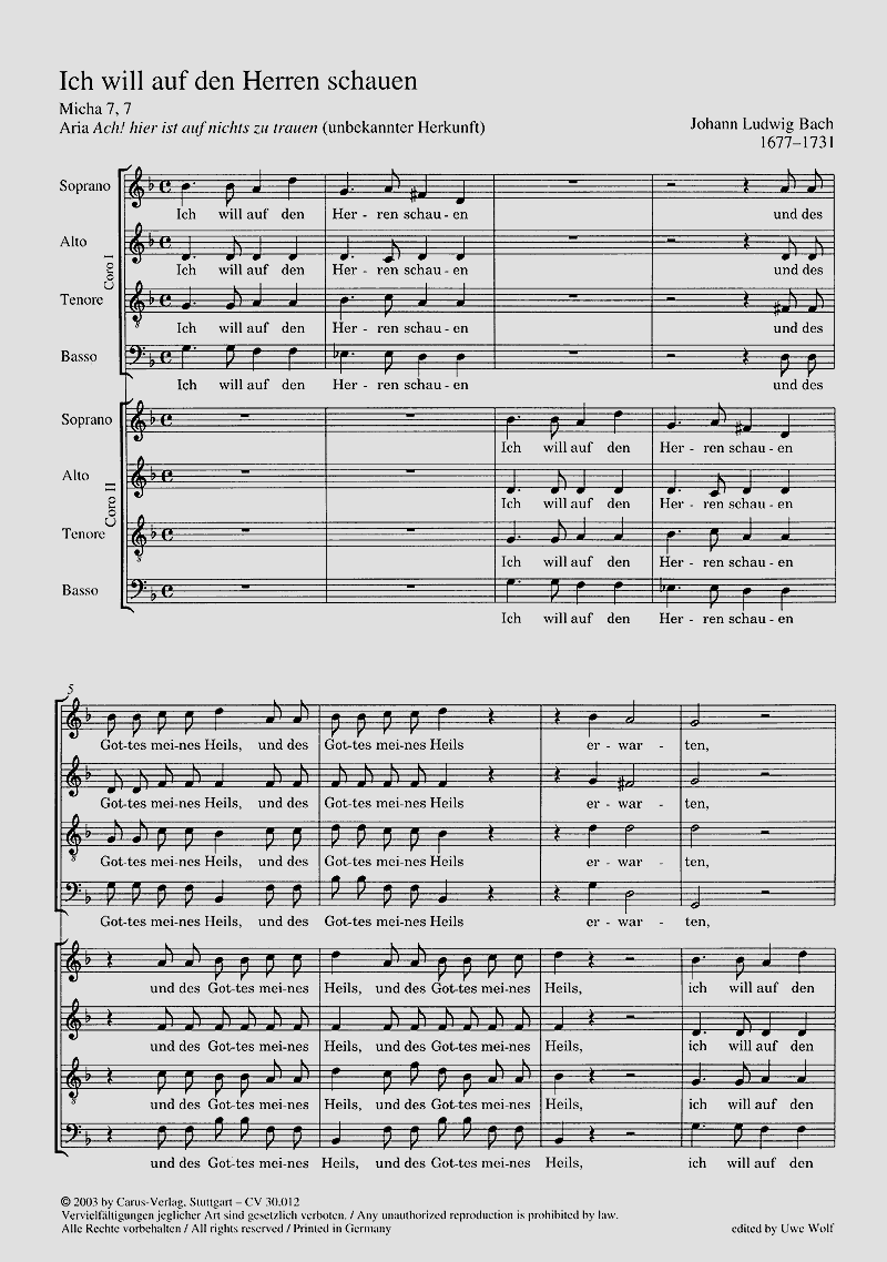 - Opt. Besetzung 2 gemischte Chöre (SATB) und Basso Continuo