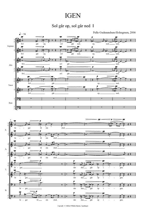 Musik: Gudmundsen-Holmgreen, Pelle og tekst: Book of Prayers. Beskrivelse: Titel: Igen - Tre korsange til tekster fra Praedikerens Bog. Musik: Gudmundsen-Holmgreen, Pelle. Tekst: Book of Prayers. Instrumentation: SATB. Sprog: Da. Format: partitur