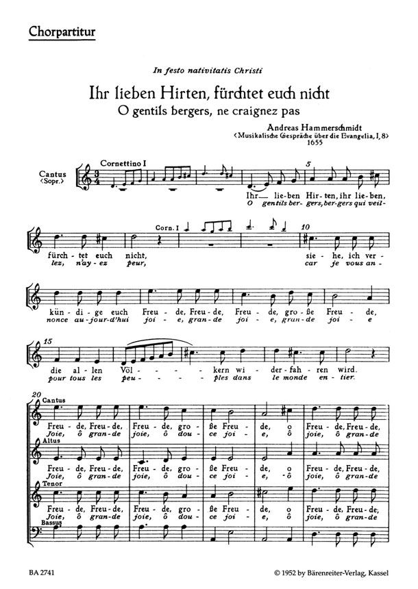 O gentils bergers, ne craignez pas für 4 gemischte Stimmen, zwei Oboen (oder Violinen) und Generalbaß (Musikalische Gespräche über die Evangelia)