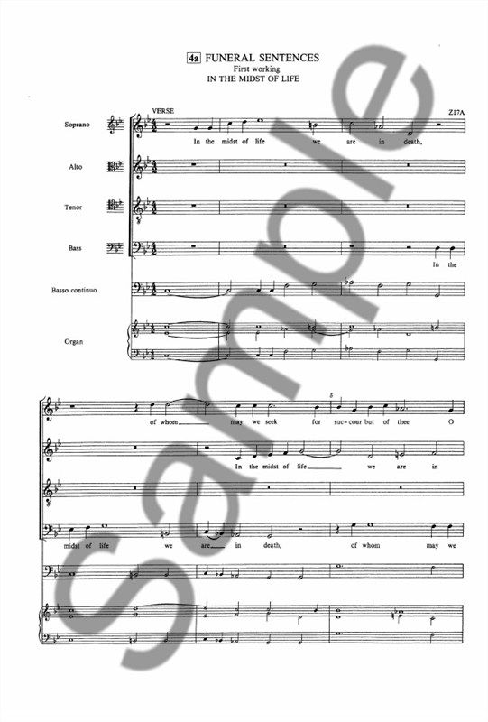 Purcell's 'In The Midst Of Life' arranged for soprano, alto, tenor and bass vocals, along with the organ.
