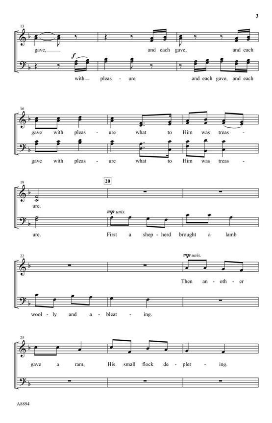 The charming French carol Quand Dieu naquit a Noel is given special treatment in this new arrangement from our Cathedral series. Unaccompanied voices vibrantly dance through a polyphony of noelsbringing a shimmer of sound to this beautiful holiday tableau. Superior arranging!