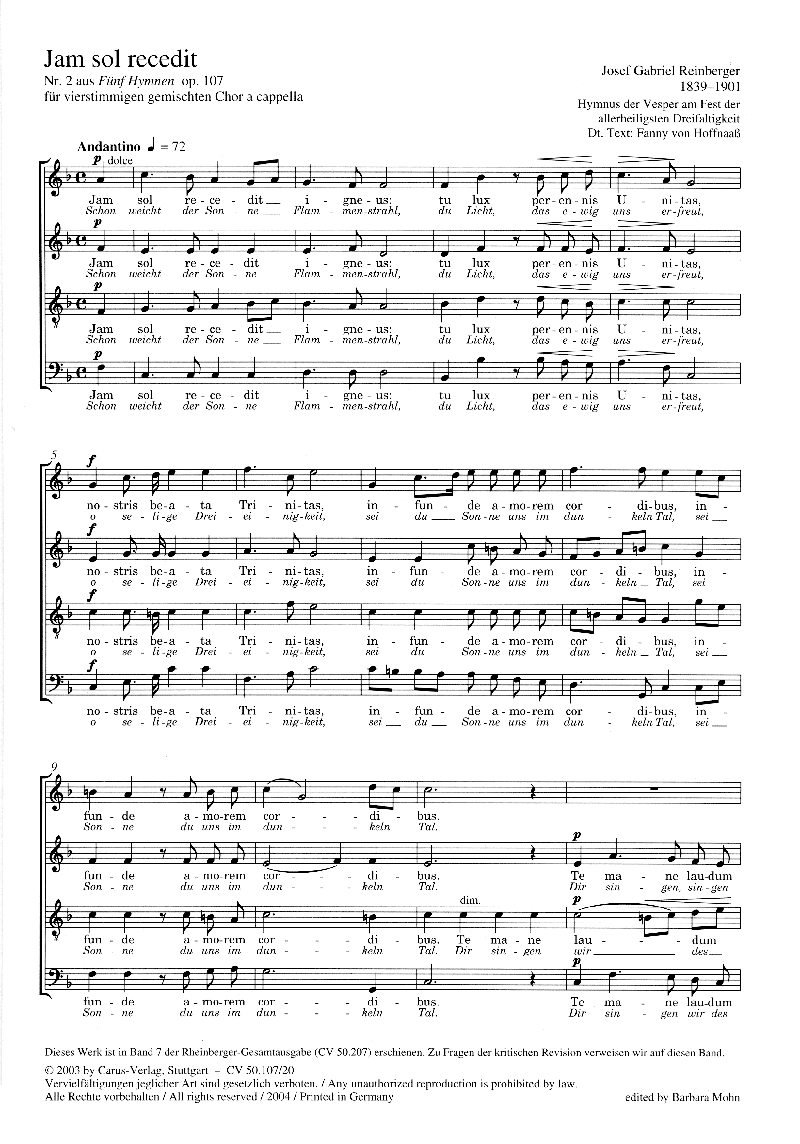 Jam sol recedit (Schon weicht der Sonne Flammenstrahl)