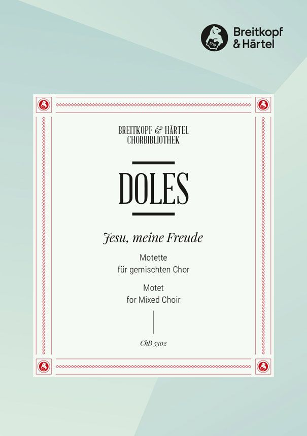 Johann Friedrich Doles war als Thomaskantor der indirekte Nachfolger J. S. Bachs in Leipzig. Als Doles um 1775 seine Motette 'Jesu, meine Freude' schrieb, dürfte er Bachs Vertonung (BWV 227) gekannt haben. Einige stilistische Parallelen lassen sich auf das große Vorgängerwerk zurückführen. Typisch für die Choralmotette von Doles ist die abgebildete 5. Strophe mit ihrem feingliedrigen Wechsel zwischen Solo- und Tutti-Abschnitten, wobei dem Komponisten und Thomaskantor, wie Doles selbst beklagt, um 1780 in Leipzig für das Tutti wahrscheinlich nur 8 qualitativ gute Sänger zur Verfügung standen - das Ende des 18. Jahrhunderts war nun einmal nicht die Blütezeit der Thomasschule. Doles' Motette geriet in Vergessenheit und galt lange Zeit als verschollen. Die Erstausgabe ergänzt in Breitkopfs 'Chor-Bibliothek' die Editionen aus Spätbarock bzw. Frühklassik (Graun, Bortnjanskij u. a.), die in den letzten Jahren neu herausgekommen sind.