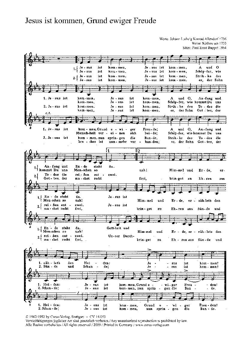 Jesus ist kommen, Grund ewiger Freude