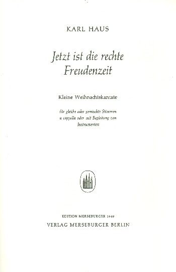 Für 3stgemChor u. Instrumente ad. lib. Kleine Weihnachtskantate.