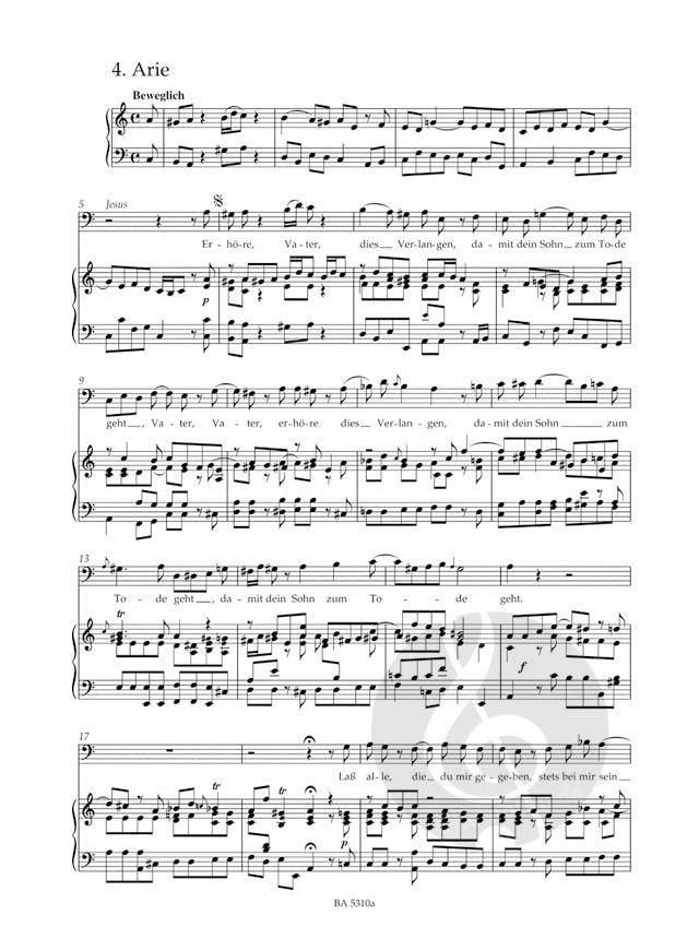Ein Lämmlein geht und trägt die Schuld. Sopran solo (2), Alt solo, Tenor solo (3), Bass solo (3), Gemischter Chor-SATB, Klavier, Streicher, Basso continuo - Klavierauszug; Urtextausgabe Chorwerke mit Orchester-Begleitung und Solo-Singstimme(n) - Geistlich - Gemischter Chor - 4stimmig.