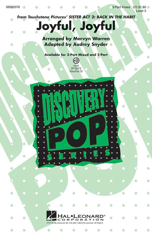 From the movie Sister Act 2: Back in the Habit, here is a contemporary and exciting rendition of Ode to Joy in gospel and hip-hop style. Geared to the younger choir, yet maintaining the rhythmic vitality of the song, this arrangement is accessible to most groups. Available separately: 3-Part Mixed, 2-Part, VoiceTrax CD. Duration: ca. 3:40.