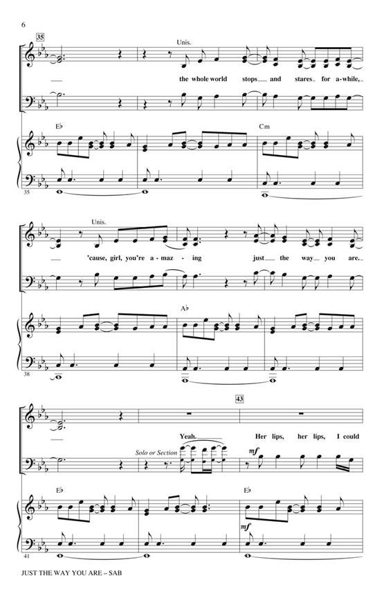 Glee hits a true sweet spot with this cover of Bruno Mars' #1 hit of 2010 with its confident pop melody, great groove and romantic vocals. Perfect for Valentines Day, Prom, Spring Concert or any type of choral program! Available separately: SATB, SAB, 2-Part, ShowTrax CD. Rhythm section parts available as a digital download (syn, gtr, b, dm). Duration: ca. 3:45.
