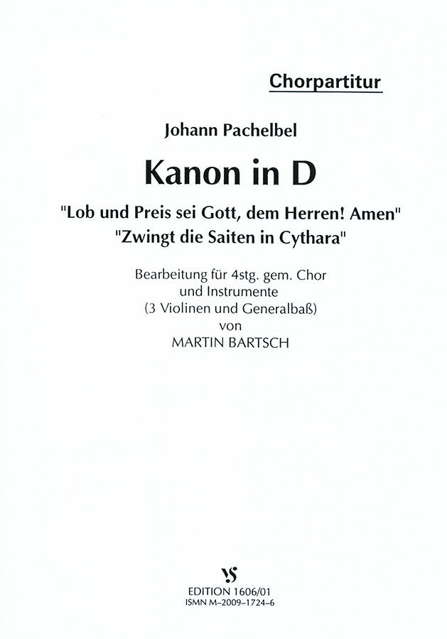 Lob und Preis sei Gott; 'Zwingt die Saiten in Cythara'. Bearbeitung für 4stg. gem. Chor und Instrumente (3 Violinen und Generalbass) von Martin Bartsch.