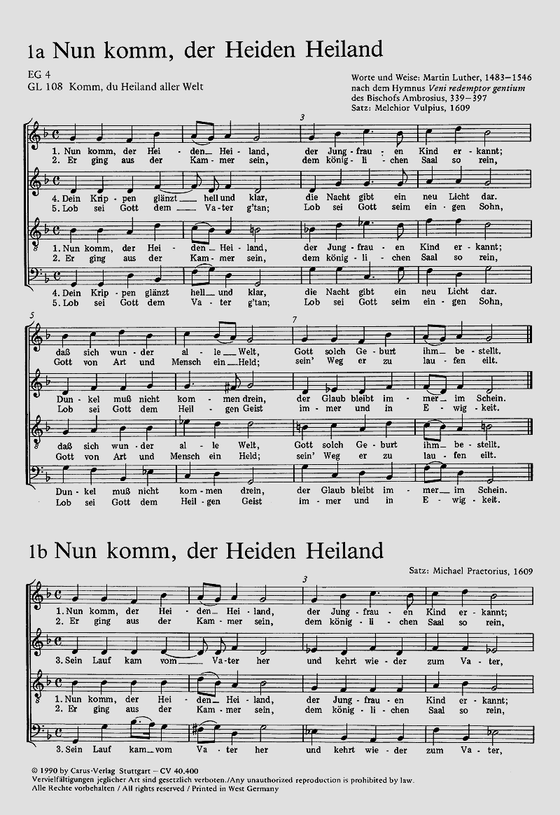 Martin Luther, Melchior Vulpius, Martin Luther Nun komm der Heiden Heiland