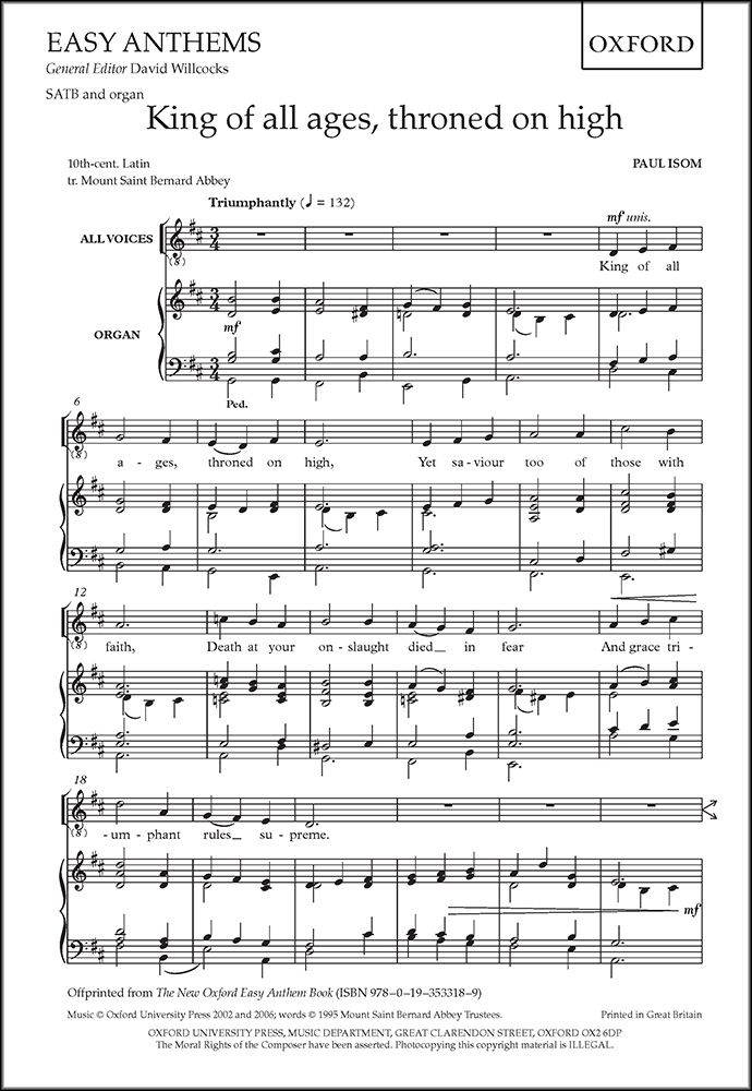 A triumphant Ascension hymn with a strong and memorable tune which culminates in a rousing Amen. It has a timeless quality that belongs to all the best hymns. Highly approachable, and suitable for all church choirs. Also in the anthology, The New Oxford Easy Anthem Book.