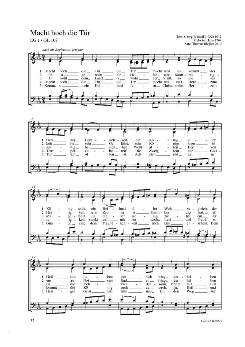Joachim Neander, Johann Crüger, Thomas Riegler, Benjamin Schmolck Tut mir auf die schöne Pforte