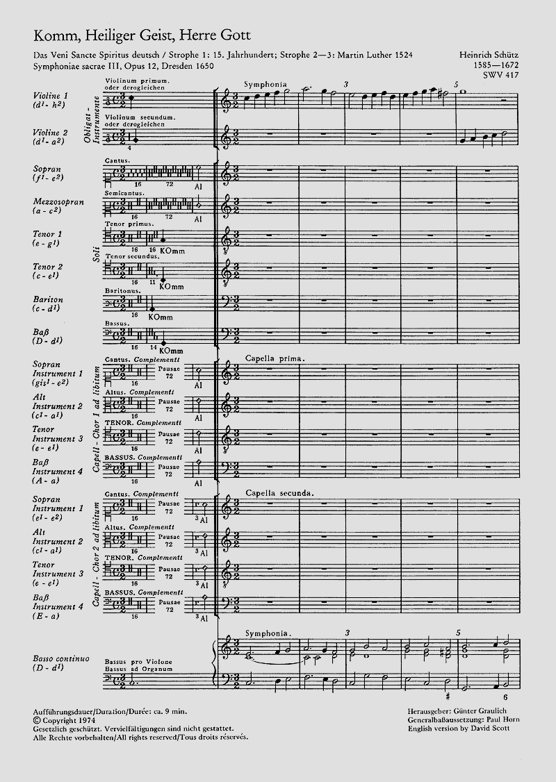 - 2 Chöre, 2 Violinen, Kontrabass und Orgel