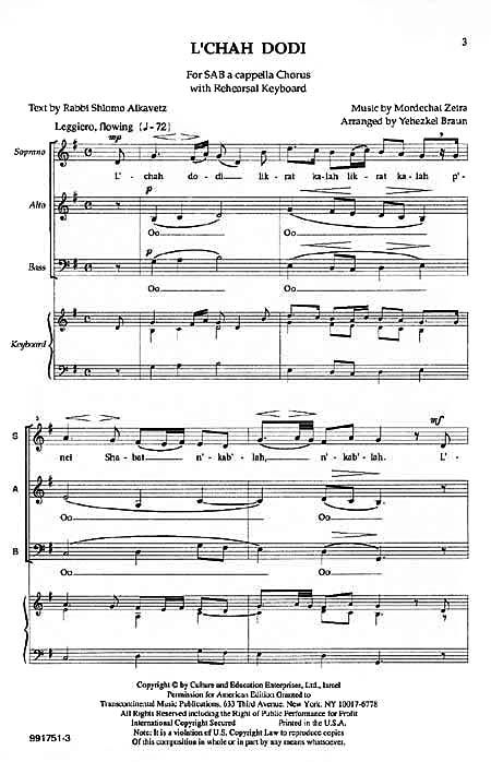 Part of the Developing Choral Series. Text by Rabbi Shlomo Alkavetz. Available for SAB.