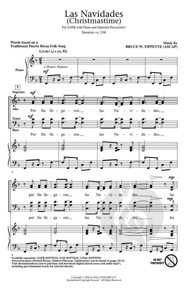 Eine lebhafte Klavierbegleitung mit würziger Perkussion unterstützt dieses originelle Werk mit dem traditionellen puertoricanischen Text. Ihr Weihnachtskonzert wird durch die synkopischen Rhythmen, die hellen Harmonien und die energischen Unisoni glänzen, die sich zu diesem Juwel für die Weihnachtszeit verbinden!