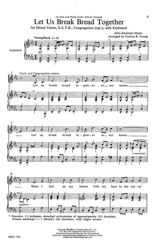 Composer Carlton Young has arranged this traditional Afro-American hymn for mixed voices (SATB) suitable for a medium easy junior high school choir. It is part of Hinshaw music's Youth Festival Choral Series.