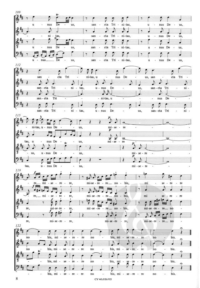 - Soli, Gemischter Chor (SATB), 2 Oboen, 2 Hörner, 2 Trompeten, Pauke, 2 Violinen, Viola und Basso Continuo