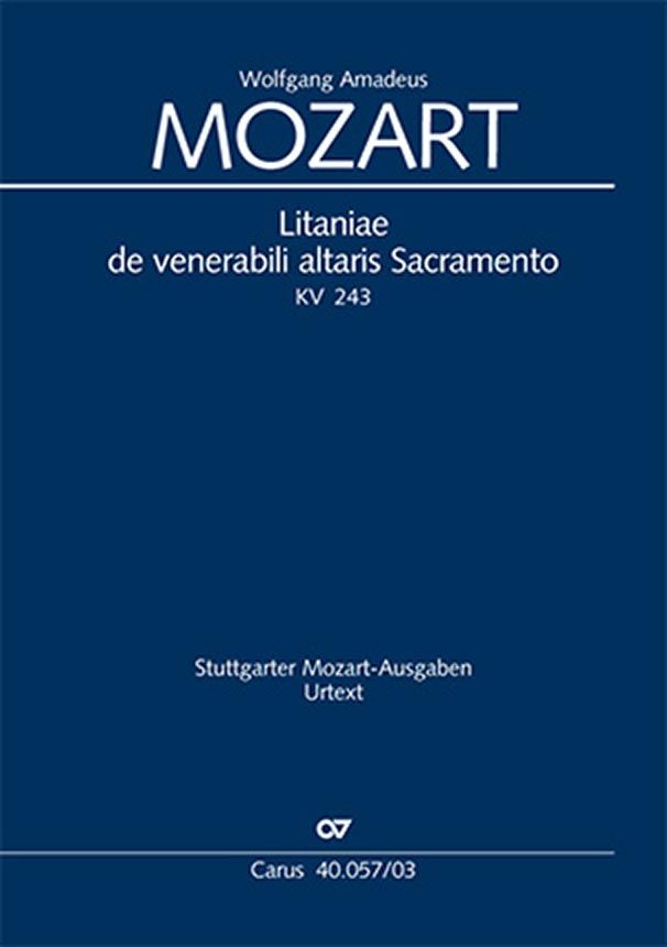 Die Litanei besteht aus sechs Sätzen, die sich in neun unterschiedlich charakterisierte Abschnitte teilen. Dabei orientiert er sich deutlich and den Sakramentslitaneien seiner Salzburger Vorgänger und Zeitgenossen. Soli SATB, Coro SATB, 2 Fl, 2 Ob, 2 Fg, 2 Cor, 3 Trb, 2 Vl, 2 Va, Bc