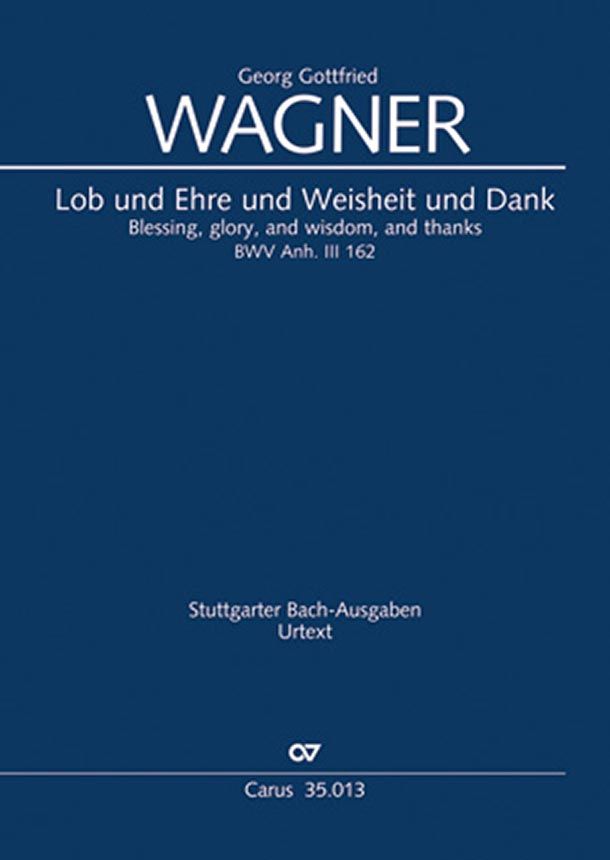 Im 19. Jahrhundert hatte die Motette Lob und Ehre und Weisheit und Dank BWV Anh. 162 zeitweilig einen Platz in der traditionellen Sechszahl der Motetten Johann Sebastian Bachs inne - bis in ihr eine Komposition des Leipziger Bach-Schülers Georg Gottfried Wagner (1698-1756) erkannt wurde. Unter dem Namen ihres wahren Autors fiel sie bald dem Vergessen anheim. Dabei ist diese klangprächtige, doppelchörige Komposition aus dem Umfeld des Thomaskantors eine wertvolle Bereicherung des Motetten-Repertoires und liegt nun in der ersten kritischen Ausgabe vor.