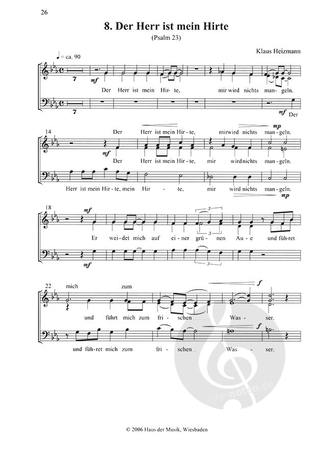 Der Bedarf von leichter dreistimmiger Chormusik (Sopran, Alt und eine Männerstimme) ist gross. Alexander Hohenfels und Klaus Heizmann haben in dieser Ausgabe Psalmen in Motettenform vertont. Begleitet werden können diese interessanten Kompositionen von Orgel oder Klavier. Diese Vertonungen mit ihren zeitlosen Texten sind vielseitig einsetzbar. Nicht nur die Sänger, sondern auch die Zuhörer werden begeistert sein.