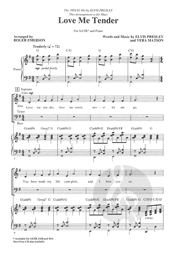 Diese Vertonung des Elvis-Presley-Songs Nr. 1 aus dem Jahr 1956 ist einfach umwerfend. Mit diesem atemberaubenden Arrangement schaffen Sie einen ganz besonderen Moment in Ihrem Konzert. Verfügbar: SATB, SAB, SSA, ShowTrax CD.