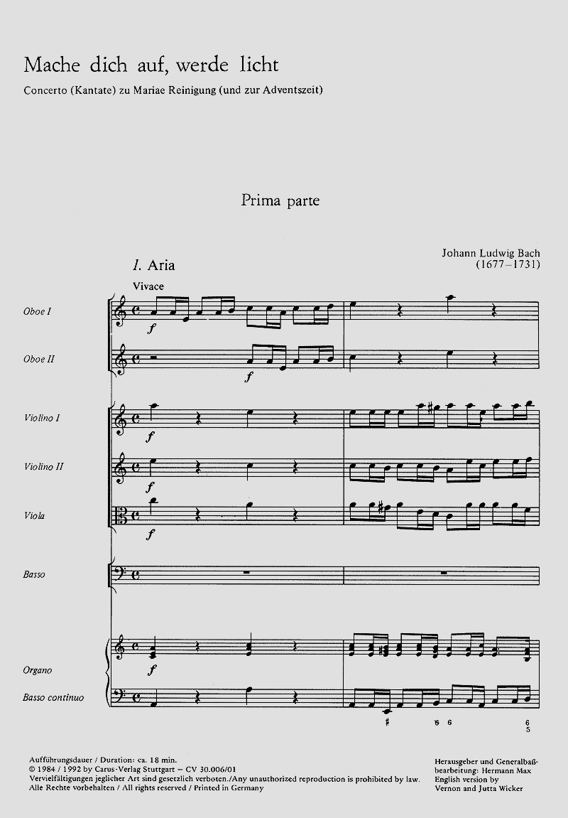 Soli SATB, Coro SATB, 2 Ob, 2 Vl, Va, Bc