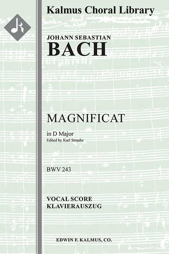 Johann Sebastian Bach (1685-1750) vertonte den Text des Magnificat, BWV 243, erstmals 1723, nachdem er sein Amt als Thomaskantor in Leipzig angetreten hatte, allerdings in der Tonart Es-Dur. Diese ursprüngliche Fassung (katalogisiert als 243.1) wurde am Weihnachtstag 1723 in der Leipziger Thomaskirche uraufgeführt und enthielt neben den zwölf Sätzen des Magnificat vier Weihnachtslieder. Bach überarbeitete das Werk 1733, indem er die Tonart zugunsten der Naturtrompeten auf D änderte und die Instrumentation durch Querflöten und Oboen d'amore leicht erweiterte. Diese zweite Fassung (243.2) wurde wahrscheinlich am 2. Juli desselben Jahres zum Fest Mariä Heimsuchung aufgeführt, einem Feiertag, der mit dem Magnificat-Text in Verbindung gebracht wird, was auch dazu führte, dass die vier Weihnachtslieder gestrichen wurden. Die zweite Fassung in D ist die heute am häufigsten aufgeführte. Die vorliegende Ausgabe stammt von Karl Straube (1873-1950), einem deutschen Chordirigenten und Organisten.