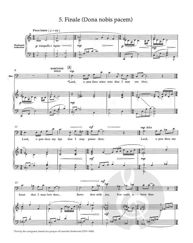 For soprano and baritone soloists, children's choir, adult choir, and orchestra or chamber ensemble.