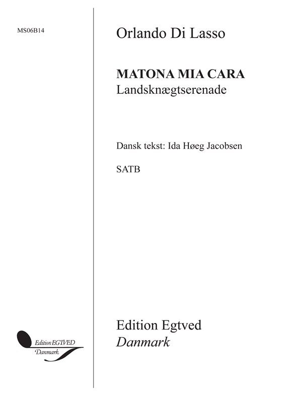 Matona Mia Cara (Landsknægtserenade) by Orlando Di Lasso with danish text by Ida Hoeg Jacobsen. Danish and Italian text. For SATB choir.